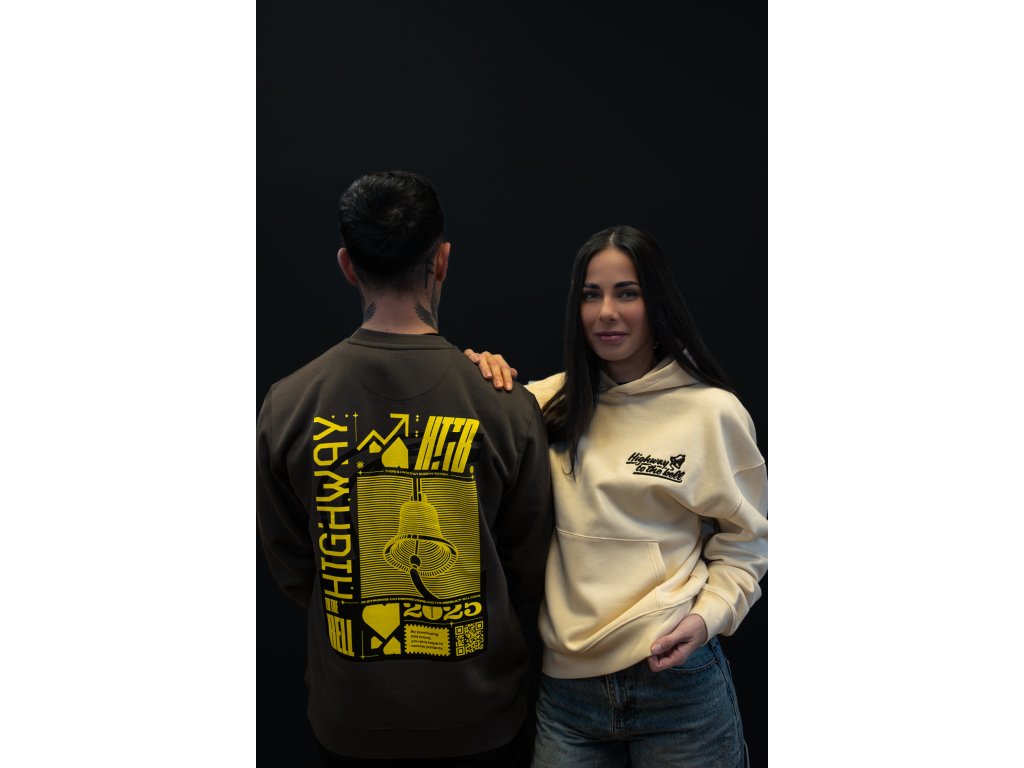 Tato mikina je základní kámen naší první kolekce. Spojuje kvalitní materiál, čistý střih a výrazný design, který v sobě nese příběh značky Highway to the Bell.
