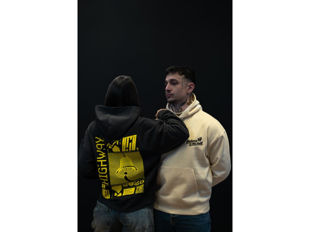 Tato mikina je základní kámen naší první kolekce. Spojuje kvalitní materiál, čistý střih a výrazný design, který v sobě nese příběh značky Highway to the Bell.