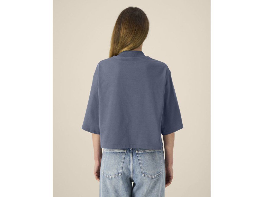 Střih je navržen jako volný a kratší (crop) – pro klasický fit zvol menší velikost.